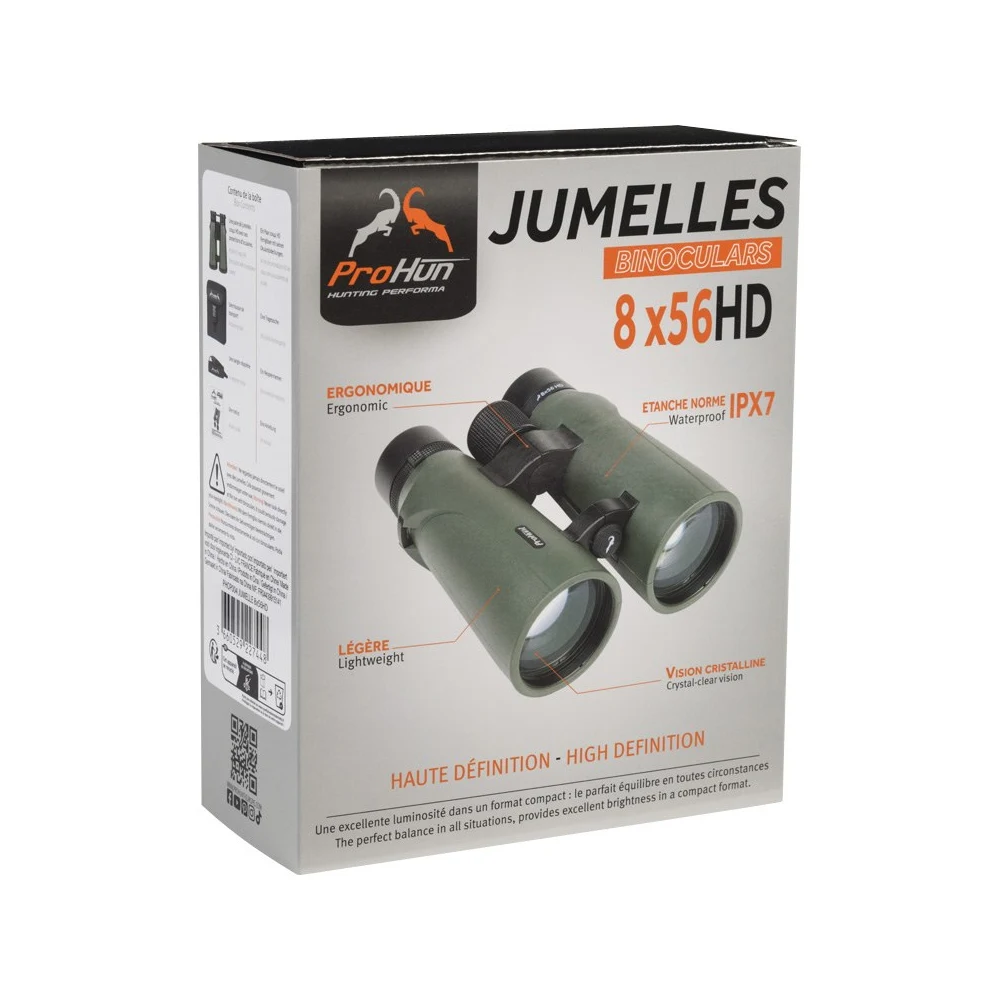 ProHunt 8×56 ultra-osvjetljeni dvogled nudi izuzetnu jasnoću. Njegova optika, posebno dizajnirana za upotrebu u uslovima slabog osvjetljenja, nudi široko vidno polje i impresivnu oštrinu sve do ivica slike. Njihov dizajn i premaz pružaju optimalno prianjanje. Dolaze s podesivom zaštitnom torbicom za nošenje. – 8x uvećanje – prečnik sočiva 56 mm koji pruža ultra-svjetli vid i visok kontrast u uslovima slabog osvjetljenja, – indeks sumraka od 21,17 – Odlično vidno polje na 1000 m, 112 m – BaK4 prizma – višeslojna za veću preciznost i osvjetljenost – Vodootporan – Okulari pogodni za nosioce naočala – Težina 820 g