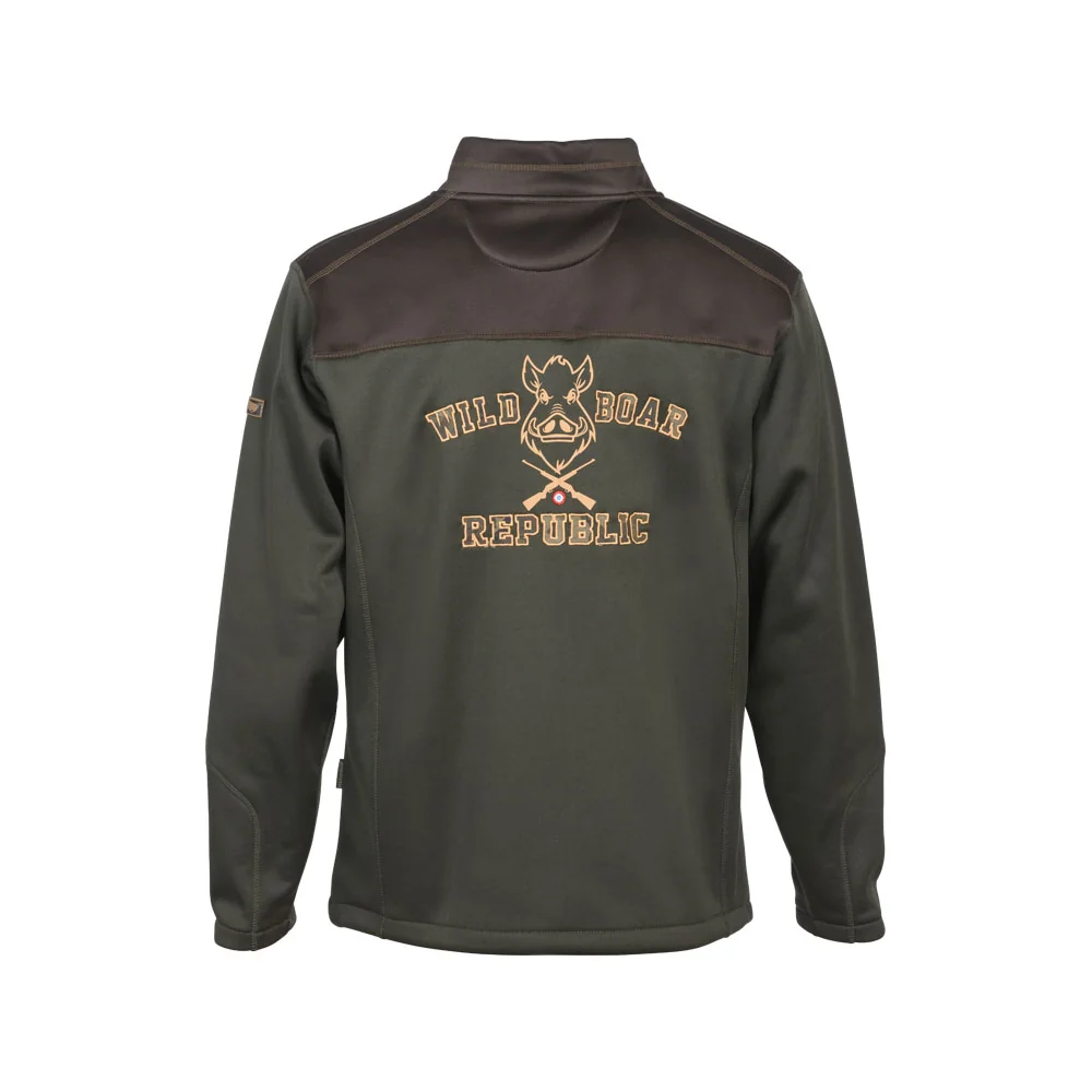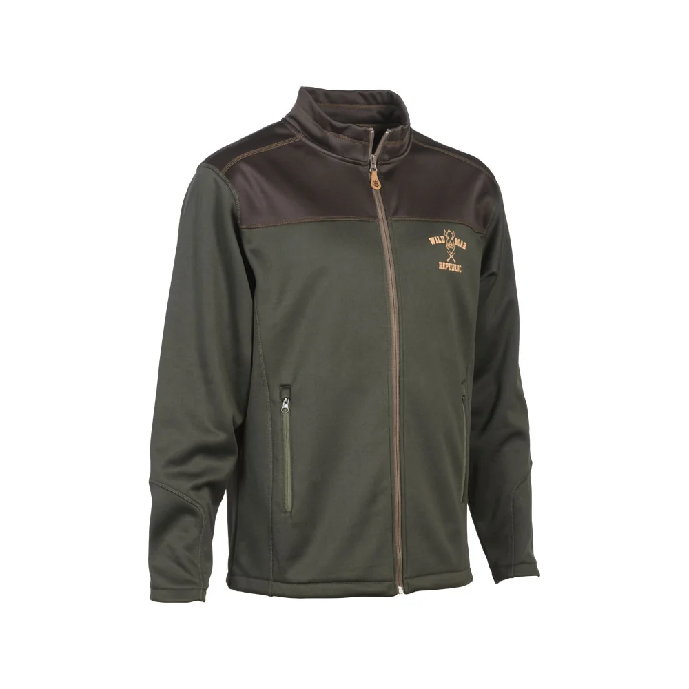 100% poliester. 2 džepa sa patentnim zatvaračem, 1 džep na prsima