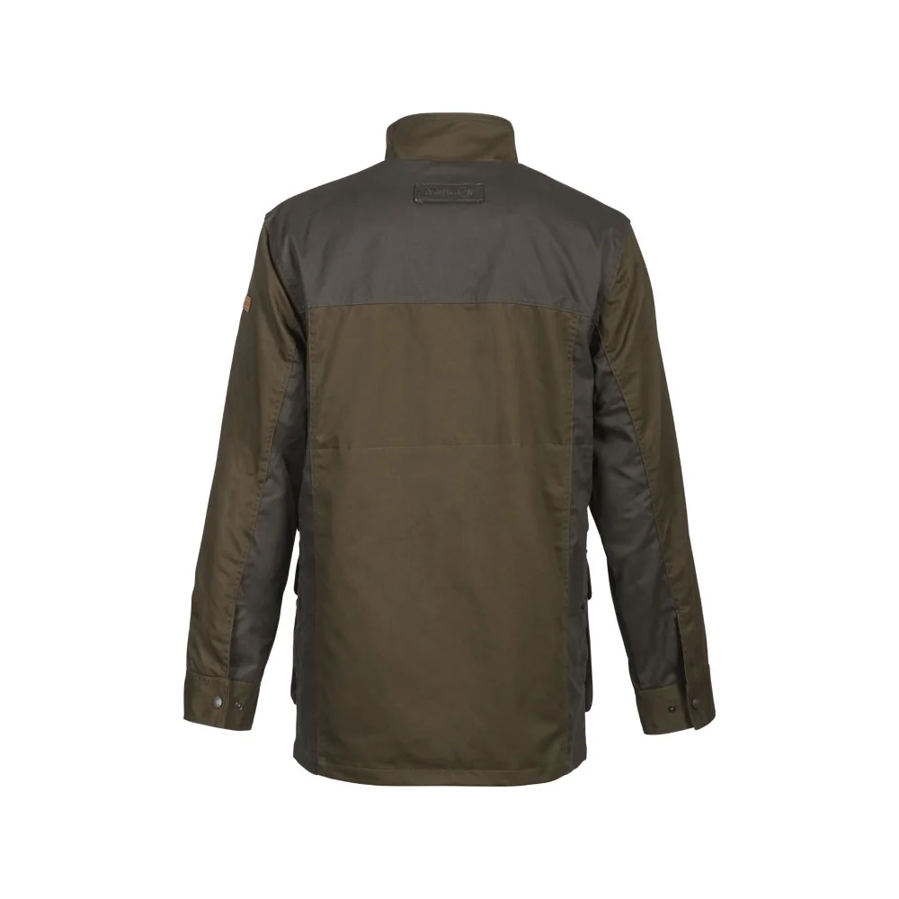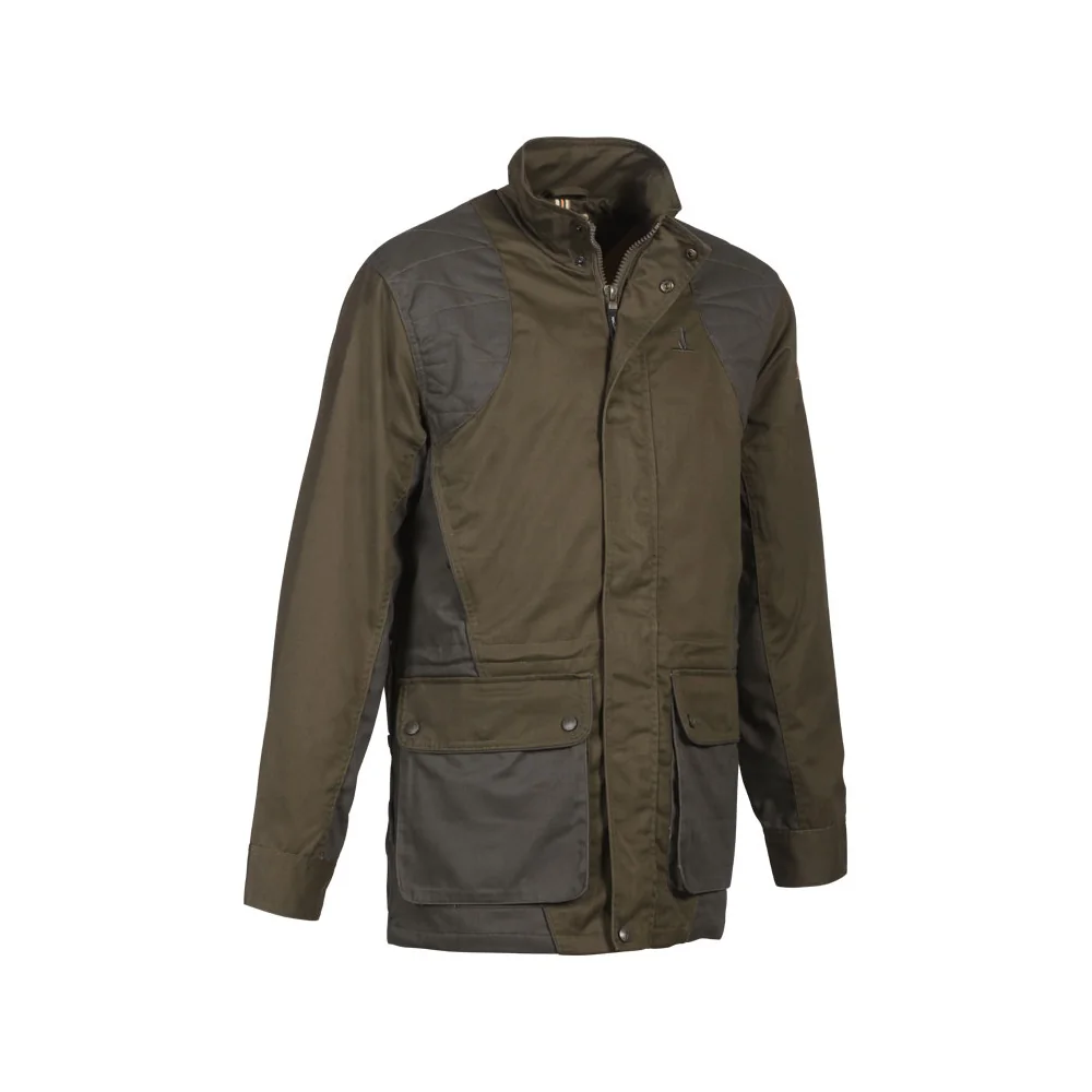 65% poliester, 35% pamuk, vodoodbojna završna obrada, podstava od 100% poliestera. Elastična vezica u struku. Jastučići za ramena, džepovi za grijače ruku, trake za pričvršćivanje, 2 velika donja džepa s 2 reda integriranih držača za metke (metak i čahure za sačmaricu), 5 unutarnjih džepova, uključujući 1 džep za telefon, torba za lov s vodootpornom i perivom podstavom, odvojiva s 2 strane s drukerima i modularna zahvaljujući umetku koji se pričvršćuje drukerima.