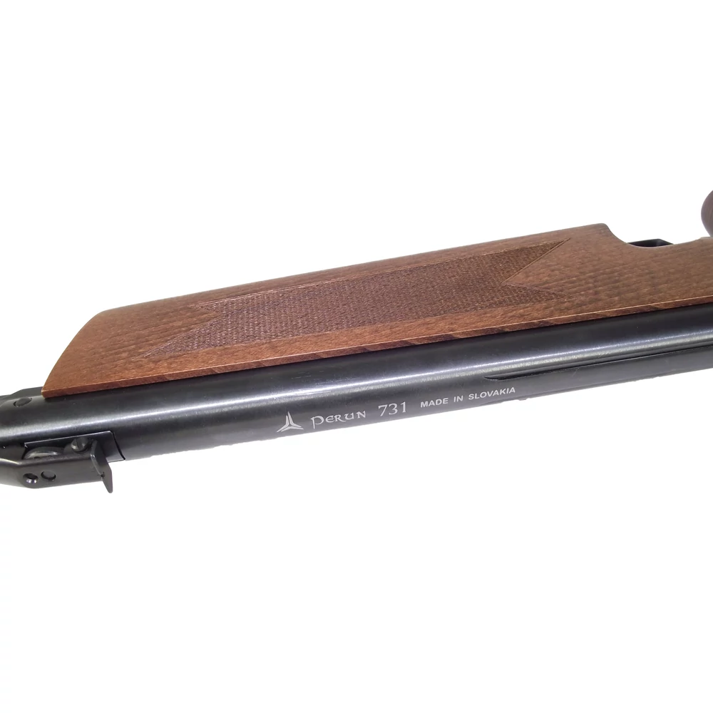 Ako nešto savršeno funkcioniše, nema razloga da se to mijenja! Perun 731 je nastao slijedeći ovaj princip, što je ujedno i svojevrsni omaž velikom starcu, pa ne čudi da će svako ko je navikao i upoznat sa 631 imati ugodno iskustvo prilikom prijema 731. Postoje samo manje dizajnerske razlike između dvije puške, poput manje izražene protuklizne površine na 731. Puška i dalje funkcioniše sa najjednostavnijom mogućom mehanikom, zasnovanom na principu opružnog prekidača cijevi.Prelamanjem cijevi oružja, postaje vidljiva komora u koju se može smjestiti dijabola, a zatim zatvaranjem cijevi oružje se dovodi u stanje spremno za paljbu, osigurano. Automatska kočnica na oružju radi besprijekorno, nalazi se na kraju cijevi i može se deaktivirati pritiskom palca, nakon čega se može pucati. Puška, prvobitno dizajnirana za 7,5 džula, iznenađujuće je precizna, a njeni zatvoreni i otvoreni nišani su odlični za upotrebu na većim udaljenostima!
